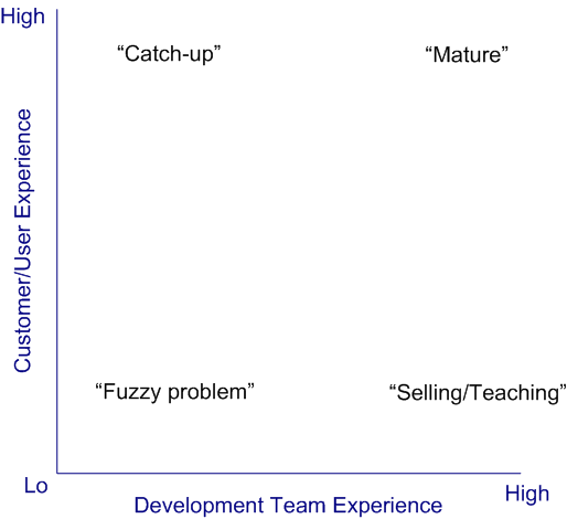 defines four main categories of customer or user experience and development team experience: "Fuzzy problem",