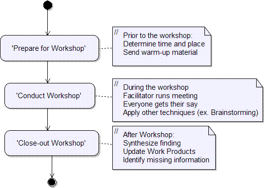 Workshops can rapidly pull together a good set of requirements. In two to five days, you can create a set of