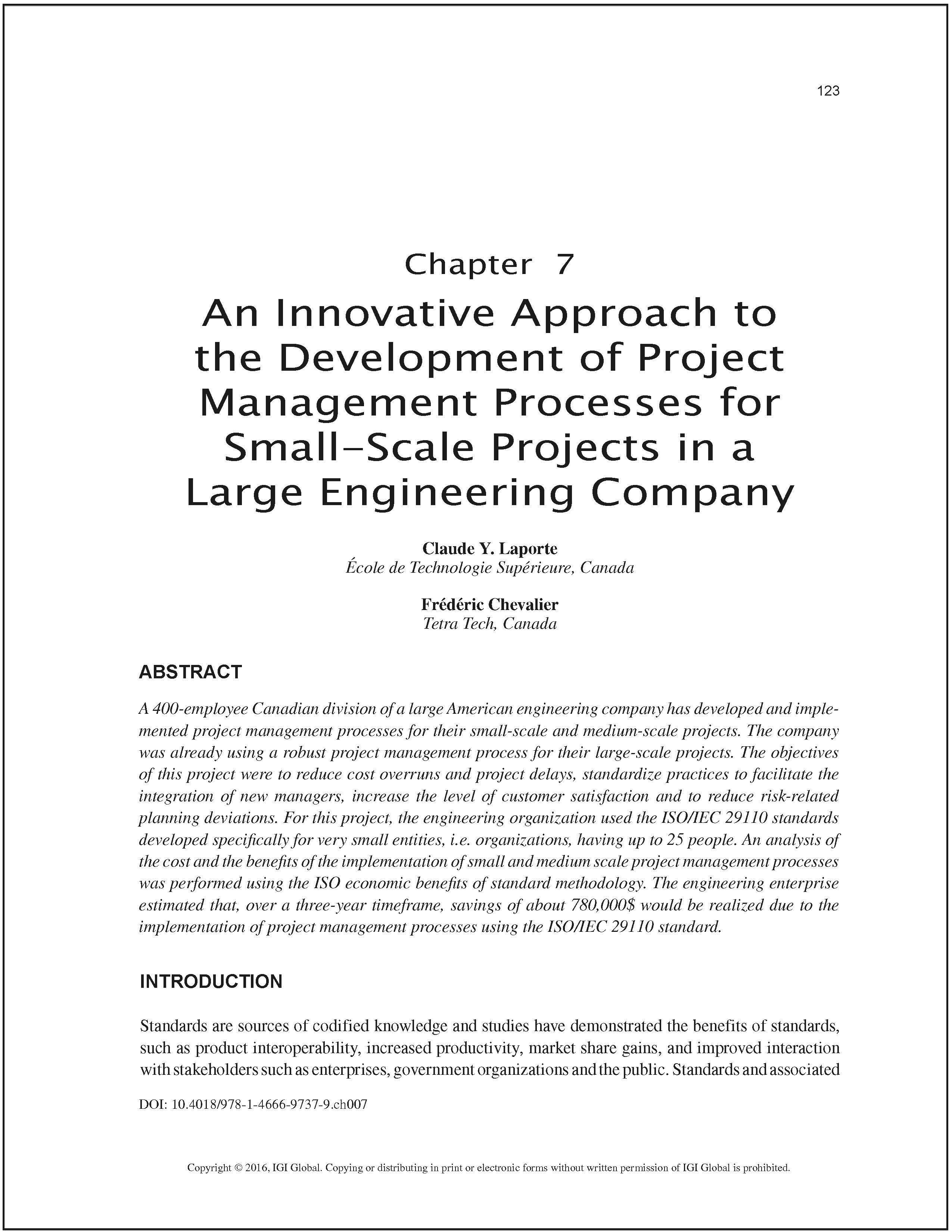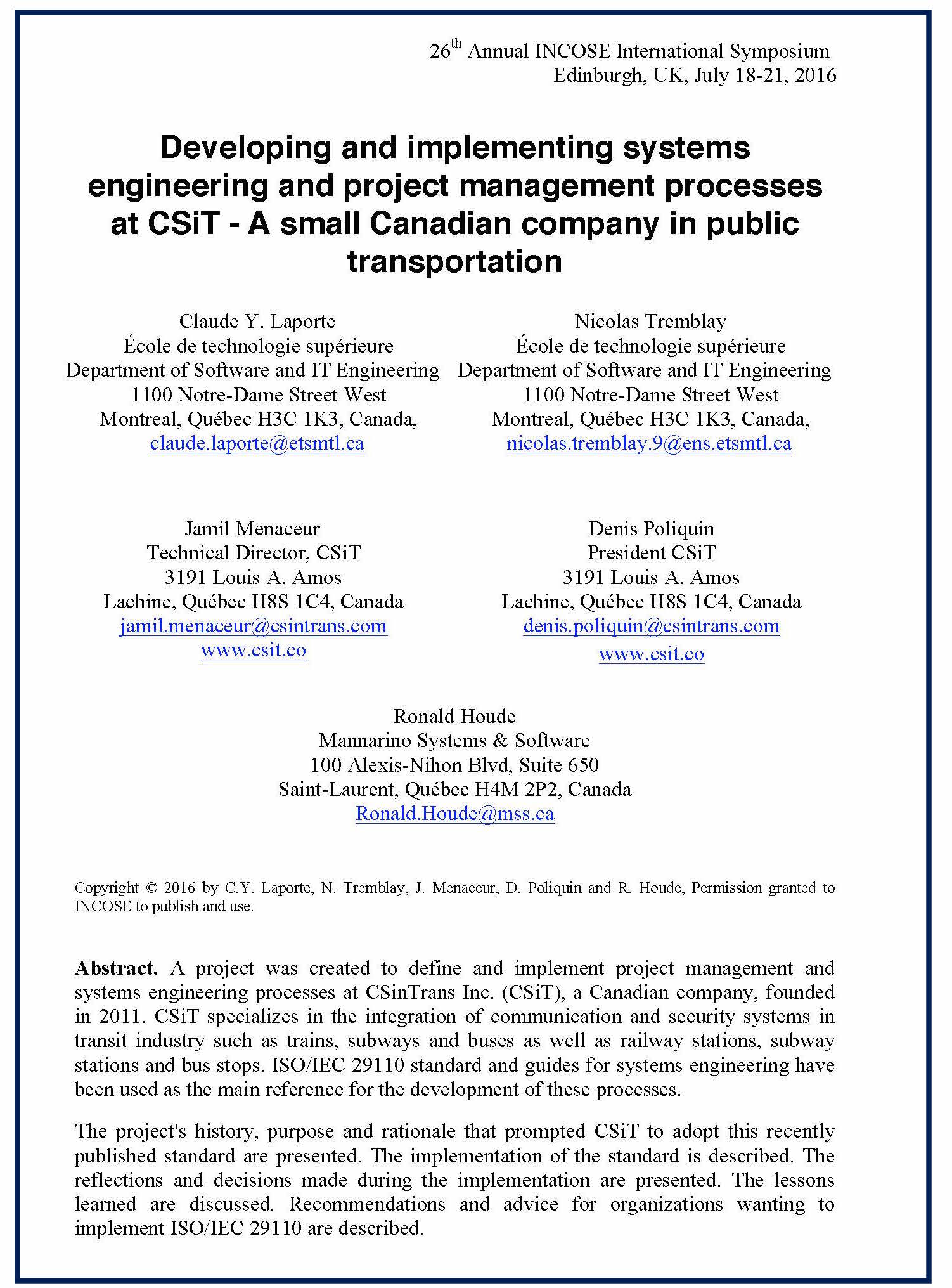 Tremblay, N., Laporte, C.Y., Poliquin, D., Menaceur, J., Implementing systems engineering and project management processes in a Canadian company – Overview and Results Achieved,