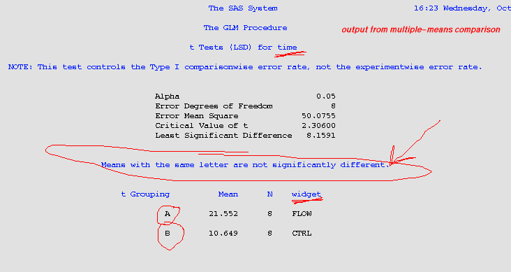 Here's another portion of the sample script's output, corresponding to the multiple-means comparison (in this particular example, the output here isn't very interesting):